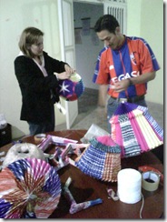 Isabel Miranda y Manuel Rodríguez preparando los adornos de la época.